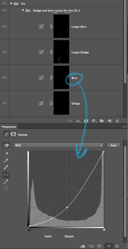 So. Why curves? How exactly to do the two curves? Not everybody uses the same technique, I've seen people using a single 50% gray layer set to "overlay" blending to do both dodge and burn (I think that's harder), and the people who do use curves, how exactly do they make them?