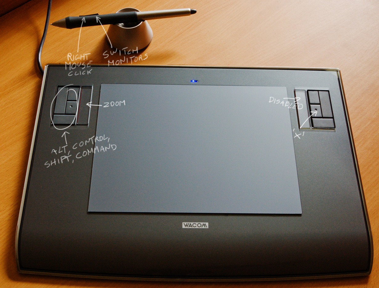 As I have two monitors and as you have to map only one to your tablet (be sure to avoid any stretching in the mapping setup), I reserve the second button to the "switch monitor" operation for the tablet. That's because I keep all the photoshop dialogs on the second monitor, so this button helps to avoid having to reach for the mouse every time I want to go on the second monitor (which I still do time to time).