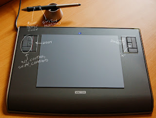 - A tablet is a must. It took me a while to get used to one, I started years ago (my first tablet connected over a serial cable... my first Photoshop was 2.5) and cheap tablets might dissuade you (i.e. I find too soft nibs to be really frustrating) but trust me, get a Wacom and live happily. You don't have to spend lots of money, I have an old Intuos 3 A5 and an even older Graphire 3 A5.